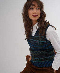 Scottish V-Neck Vest Brodie Kingfisher by Eribe
