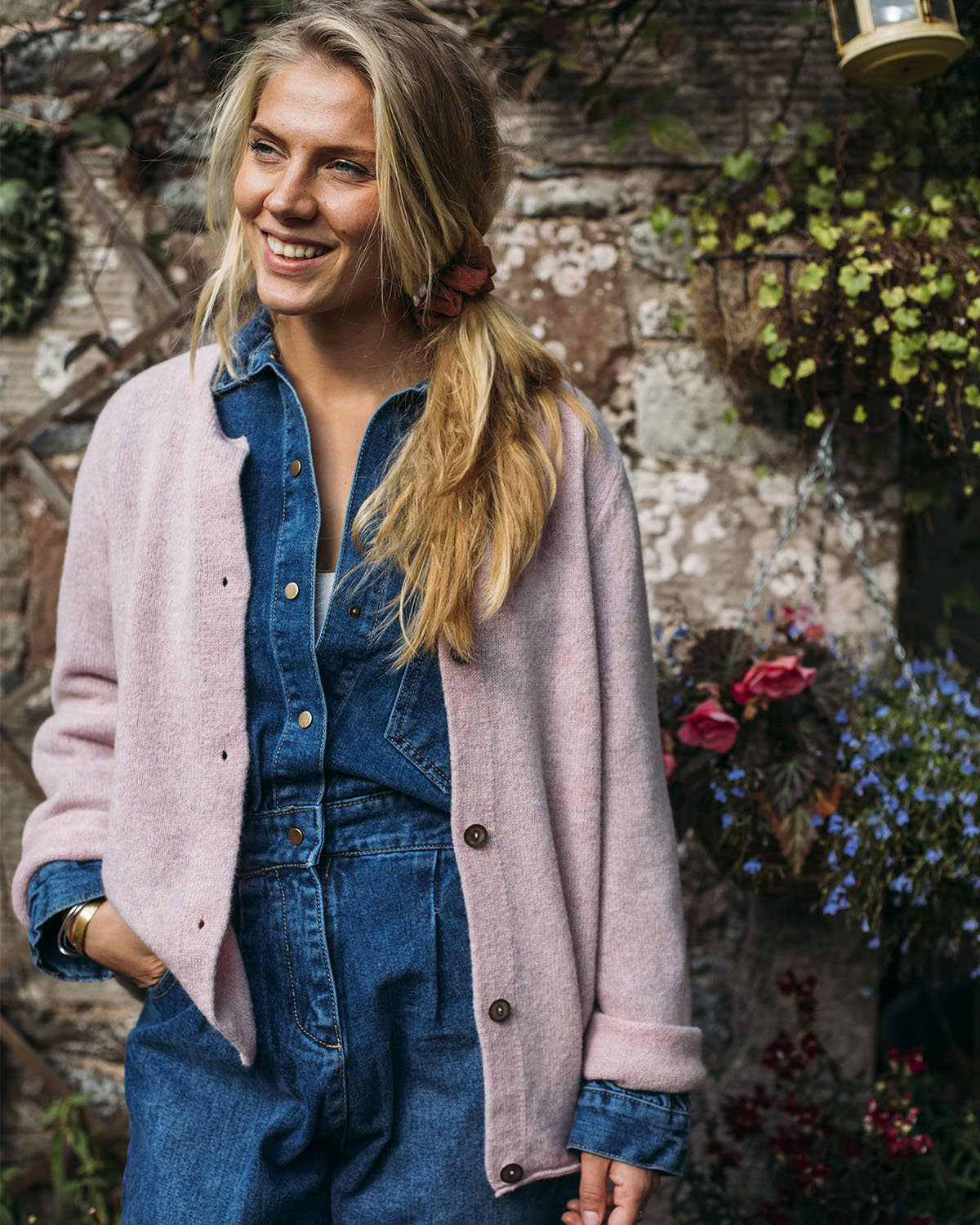 A very classic round neck buttoned cardigan, quite lightweight. It is knitted in stockinette stitch using very soft lambswool in marvelous soft pink color.